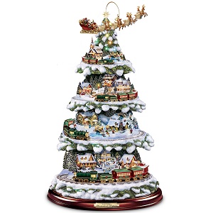 This complete snow covered Christmas village scene consists of 4 levels that rotate to provide a 360 degrees vista. See it here. Creating your scene may take a bit of input from other members of the family which should provide some fun I would imagine.