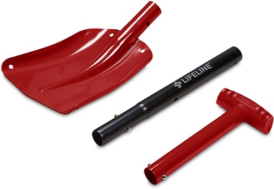 The Lifeline red aluminum sport utility shovel collapsible comes in 3 easy to assemble and disassemble parts to create a compact snow shovel.